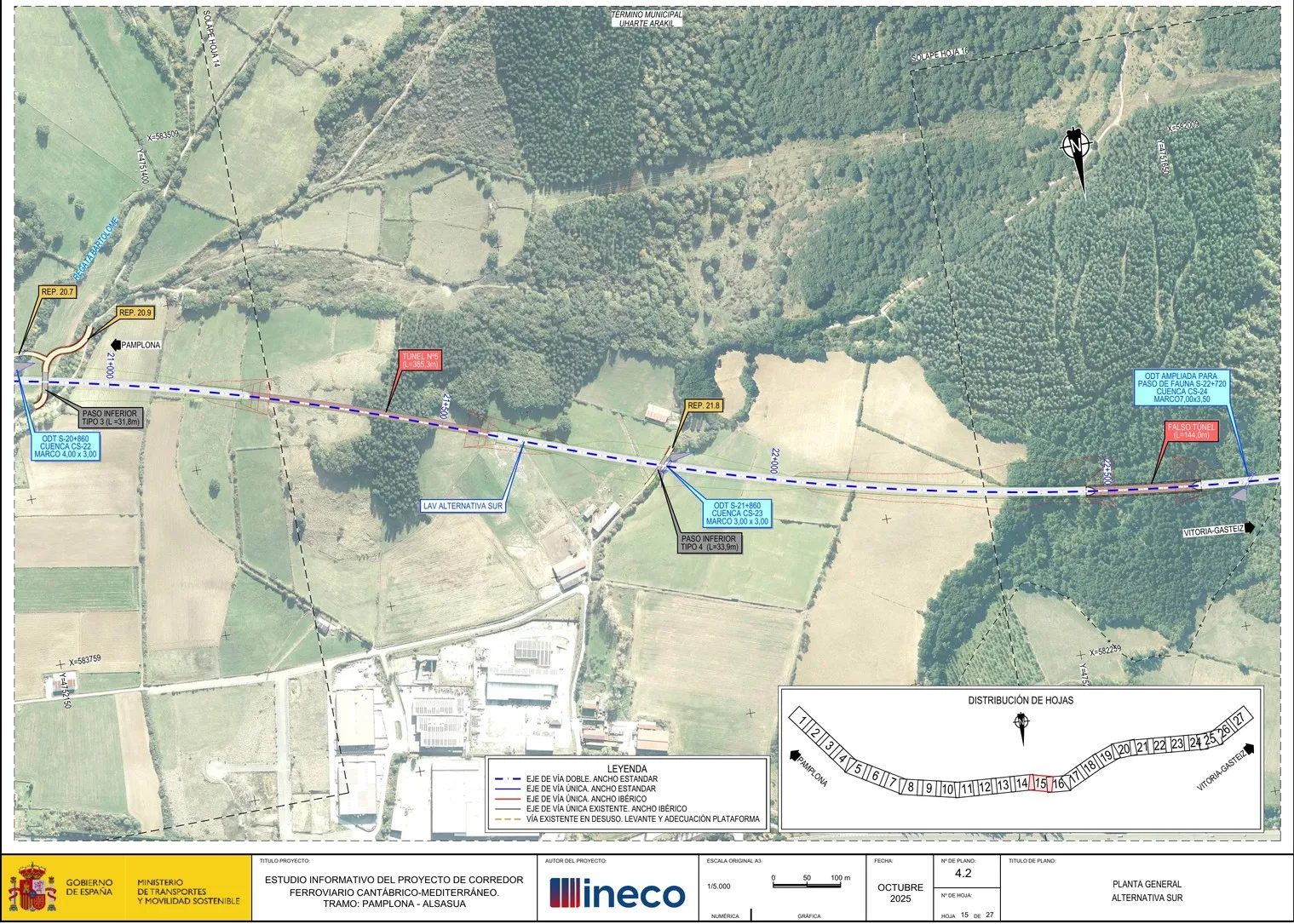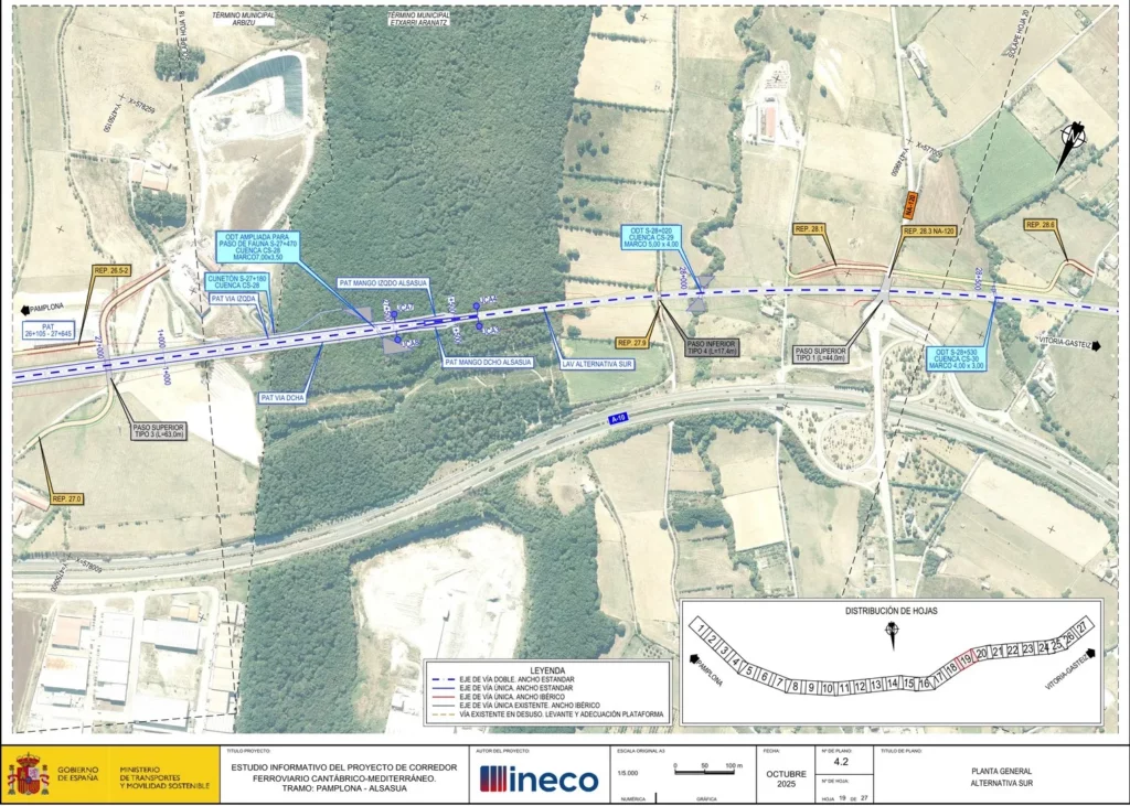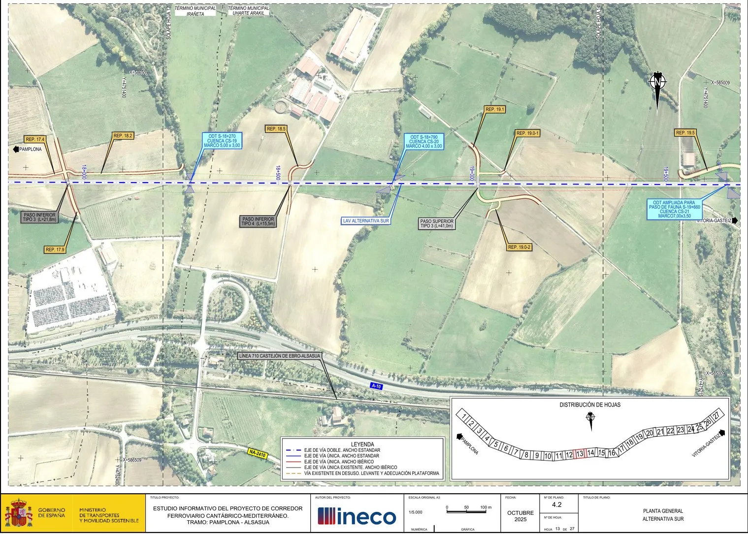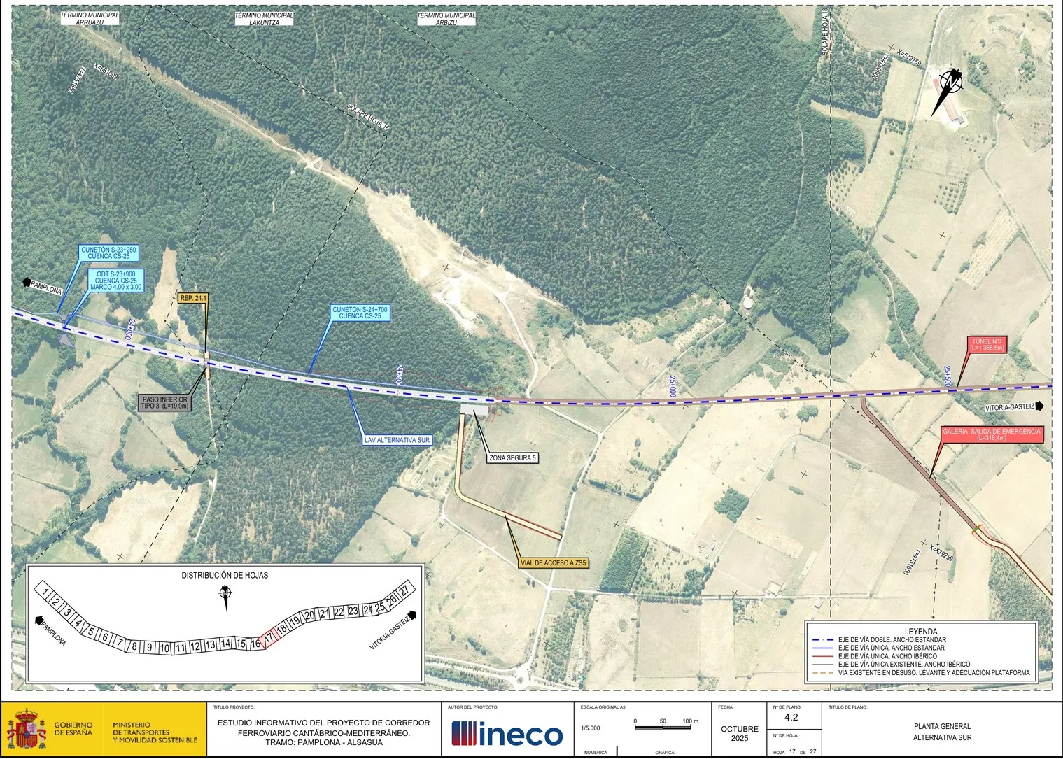 – Planos y afecciones del proyecto del TAV entre Ihabar y Bakaiku, alternativa Norte
