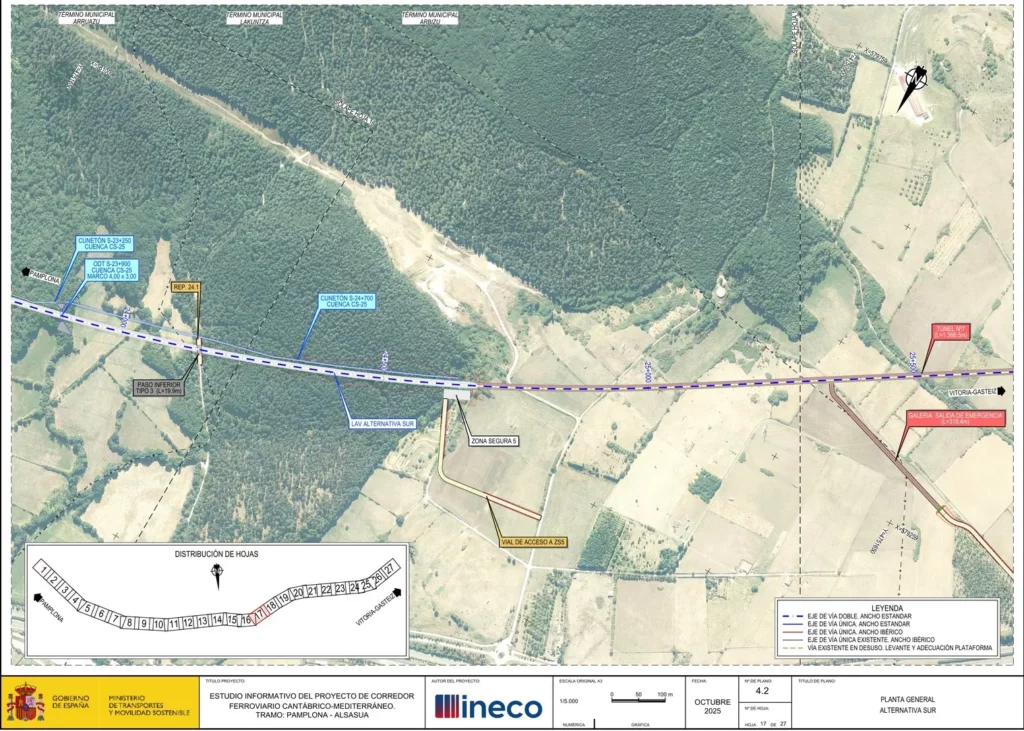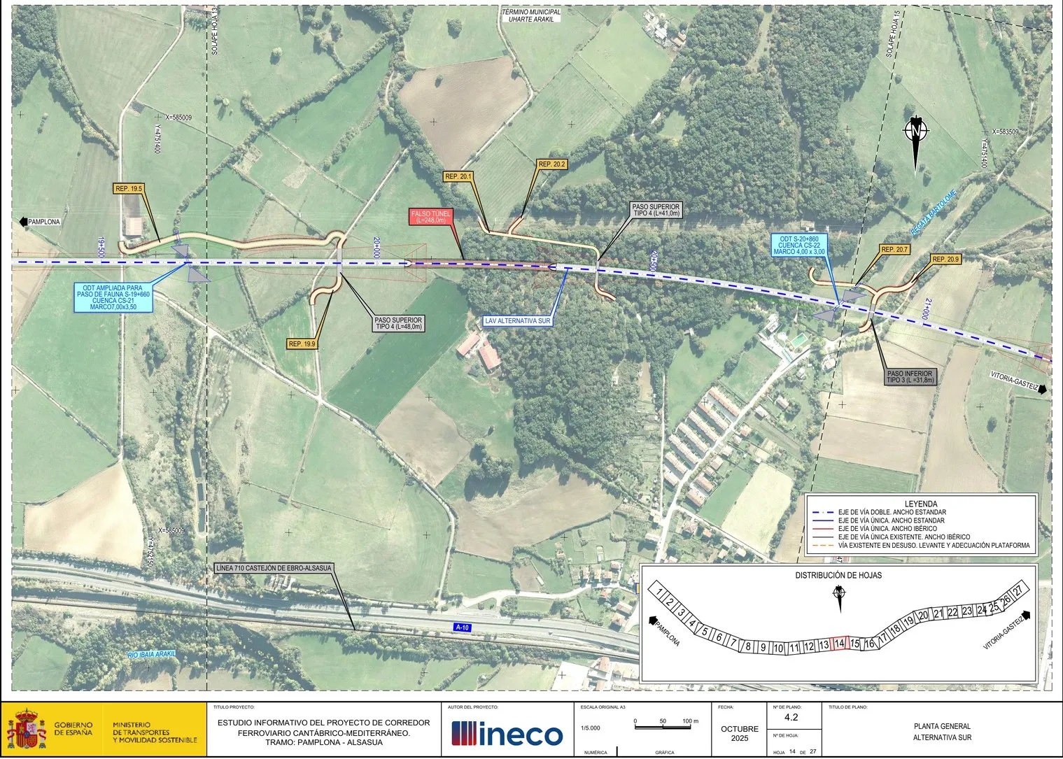 – Planos y afecciones del proyecto del TAV entre Ihabar y Bakaiku, alternativa Sur (esta página)